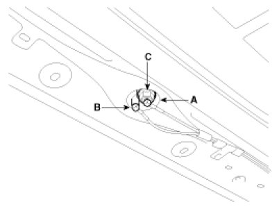 2. Disconnect the GPS cable (A) and XM radio cable (B) after removing a nut (C).