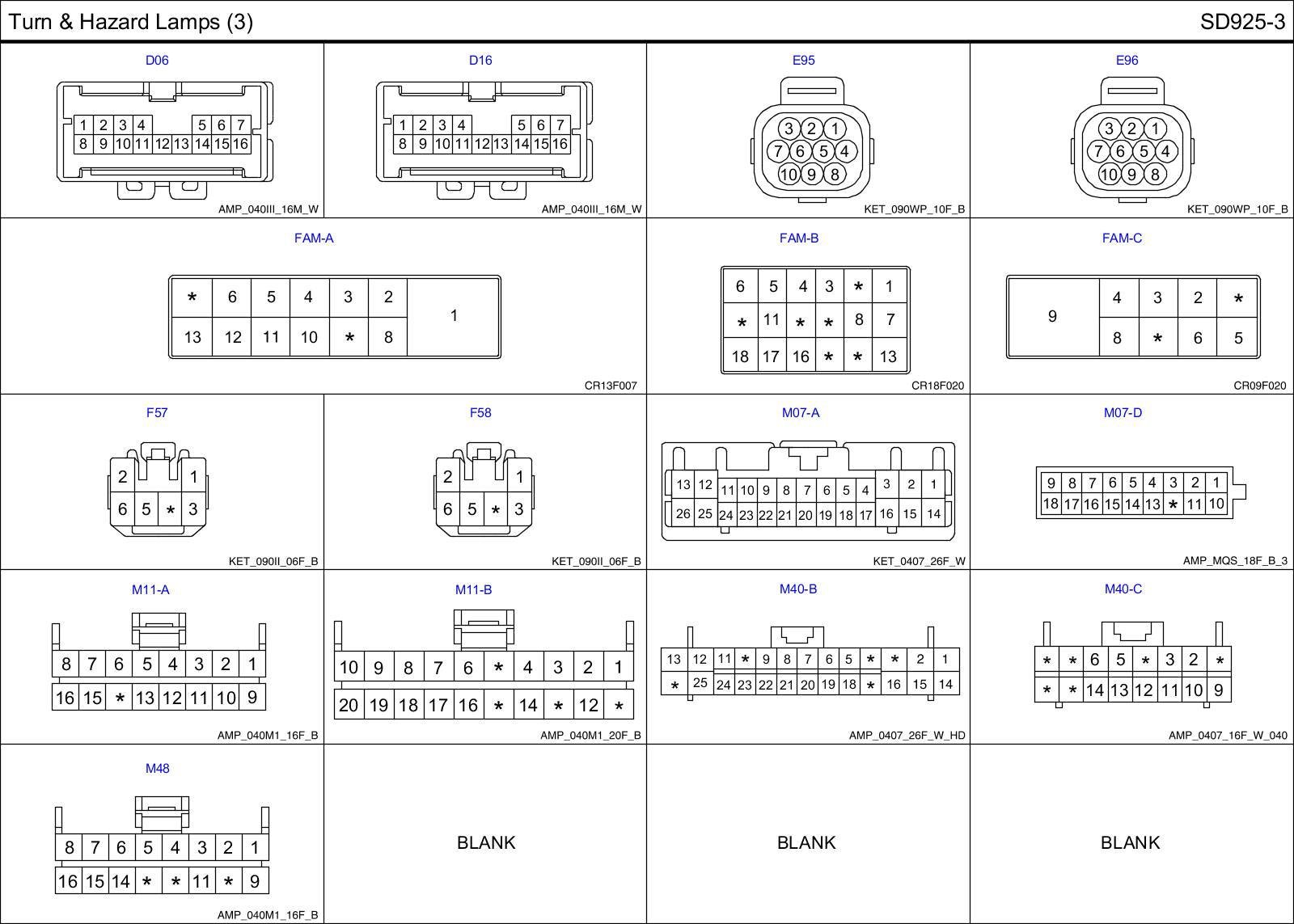 Turn & Hazard Lamps (3) Connector Pin Outs: