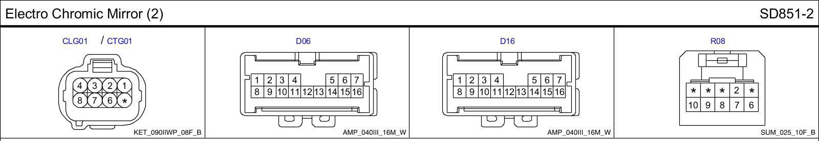Electro Chromic Mirror (2) Connector Pin Outs: