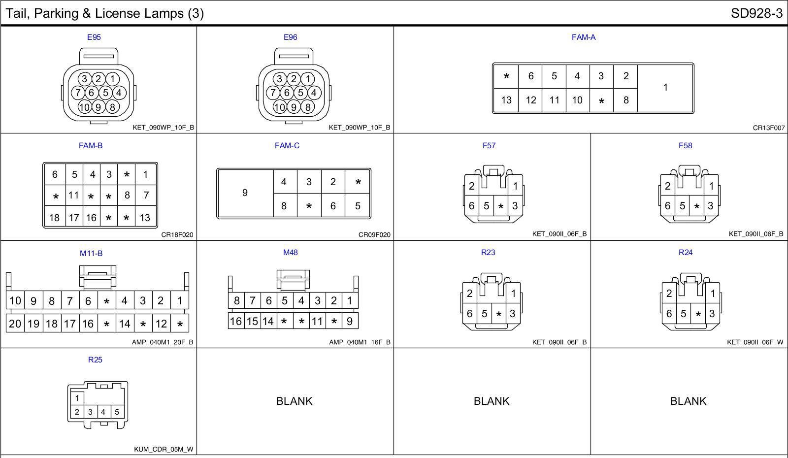 Tail, Parking & License Lamps (3) Connector Pin Outs: