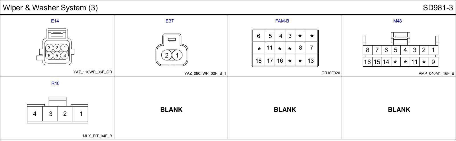 Wiper & Washer System (3) Connector Pin Outs: