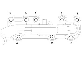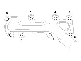 NOTE: When installing the exhaust manifold, tighten the nuts with pre-torque first and then tighten the nuts with specified torque in the sequence shown.