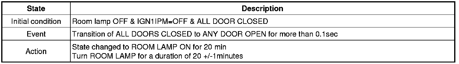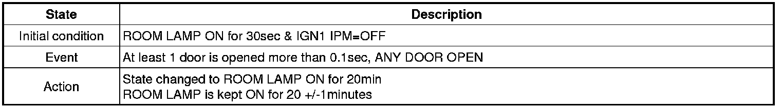 Any door opens at terminal OFF state without FOB in. After transition to all door closed within 500msec, if the valid Fob is in side car and all door locked then IPM transmits SMK key reminder warning 2 command (SMK Warning