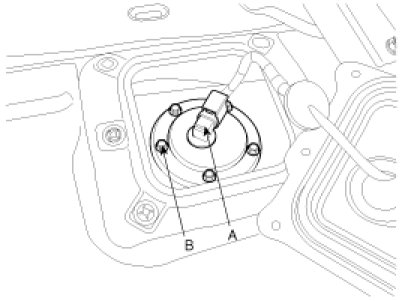 4. Remove the sub fuel sender from the fuel tank after removing the installation bolts (B).