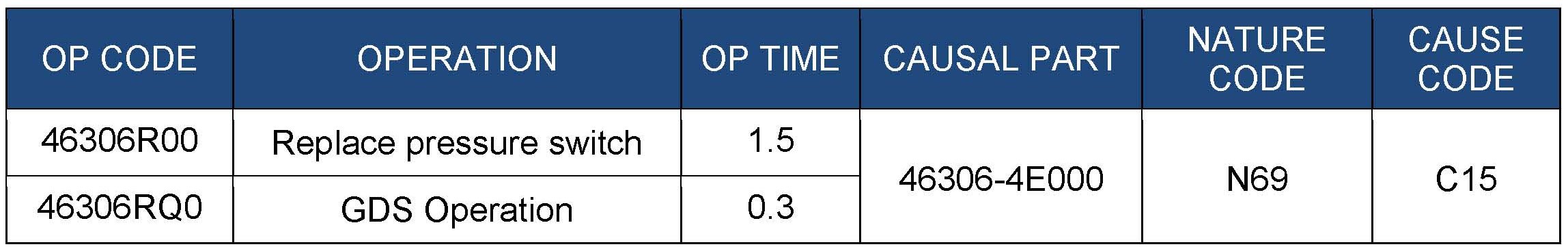 This TSB supersedes TSB 12-AT-015-1 to add an Op Code for pressure switch replacement.