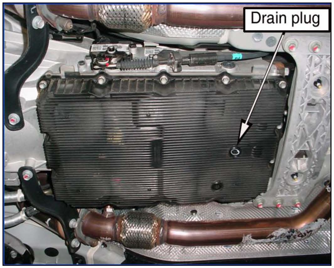 7. Use an 8mm or 5/16 hex socket and remove the drain plug and drain the ATF. Reinstall the drain plug.