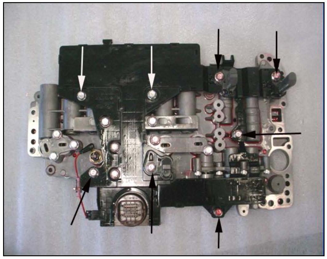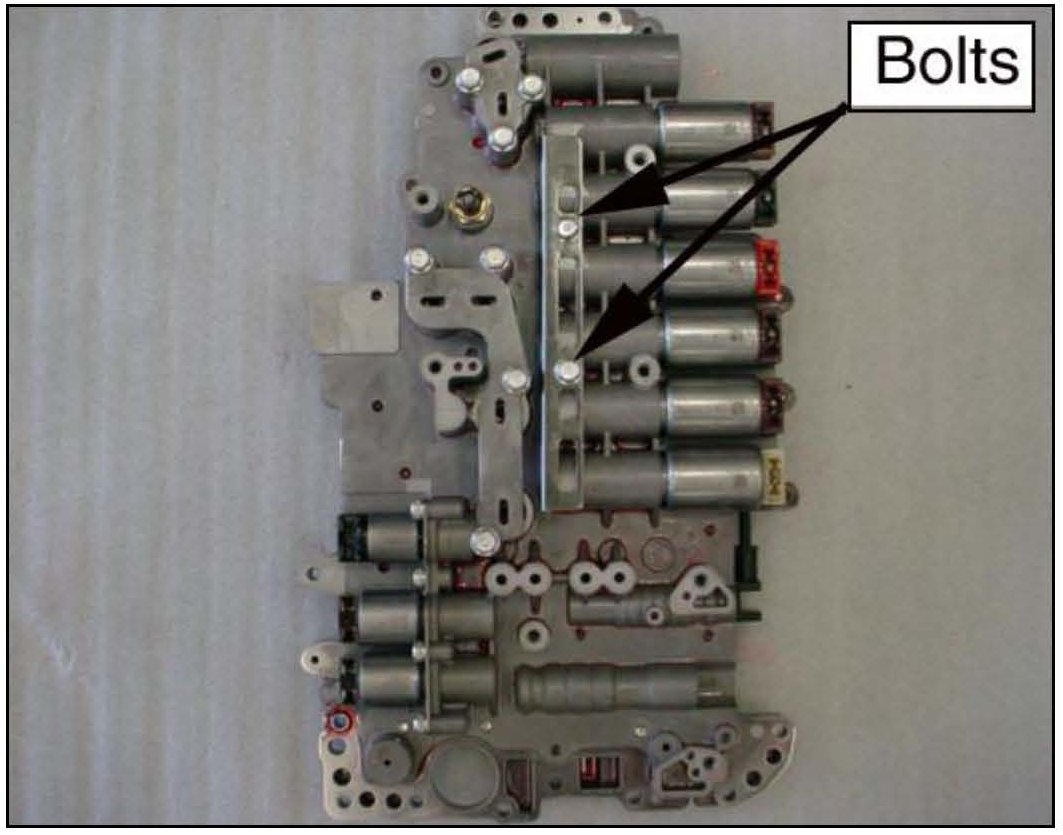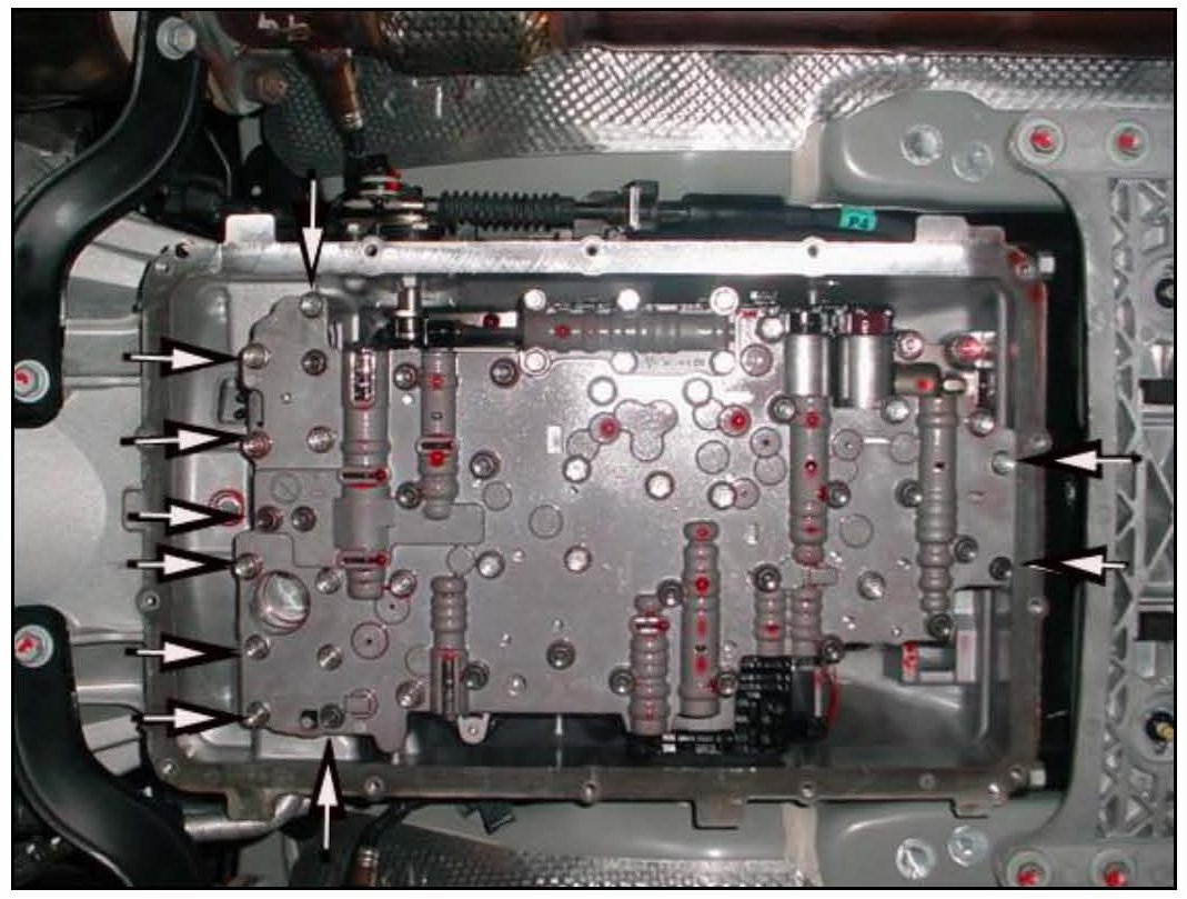 8. Remove the 10 bolts that secure the valve body to the case and remove the valve body.