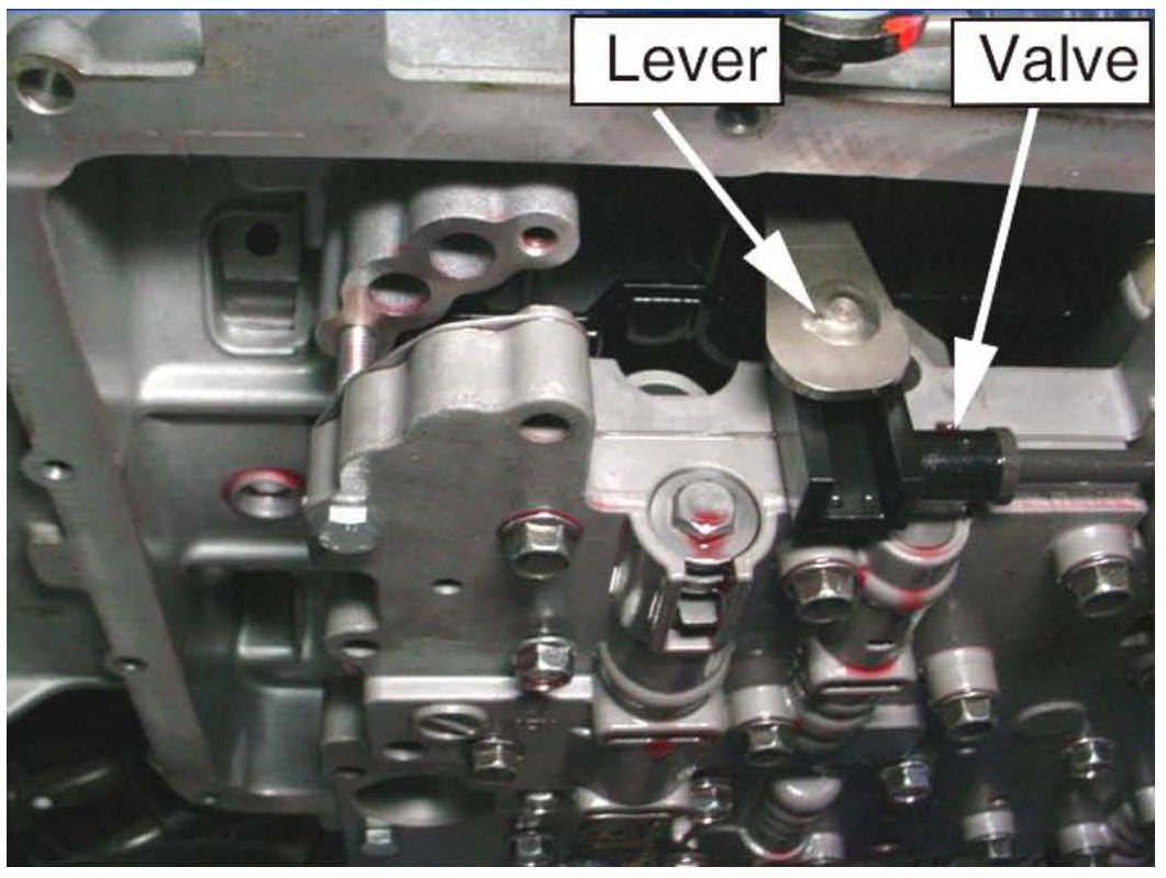 17. Carefully align the manual valve to the shift lever and install the new valve body.