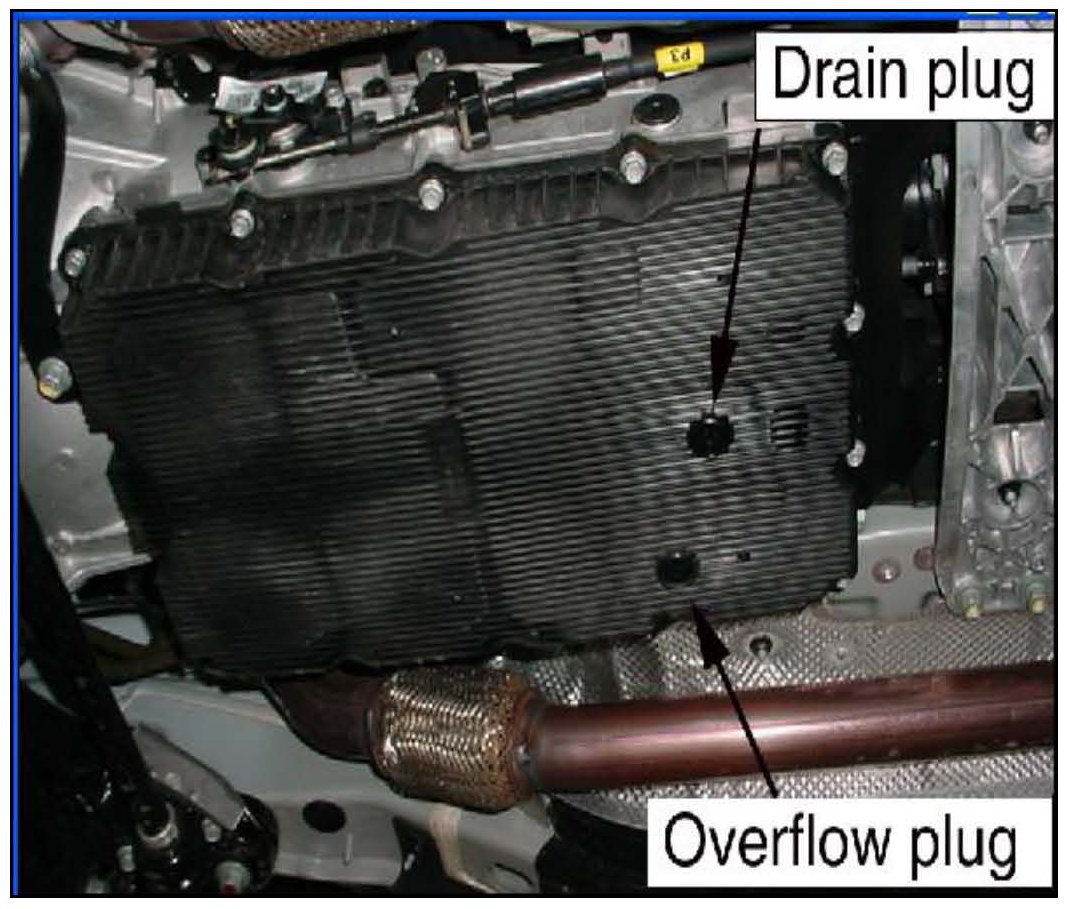 Remove the overflow plug. The ATF level is correct when the ATF flows out in a steady, thin stream.