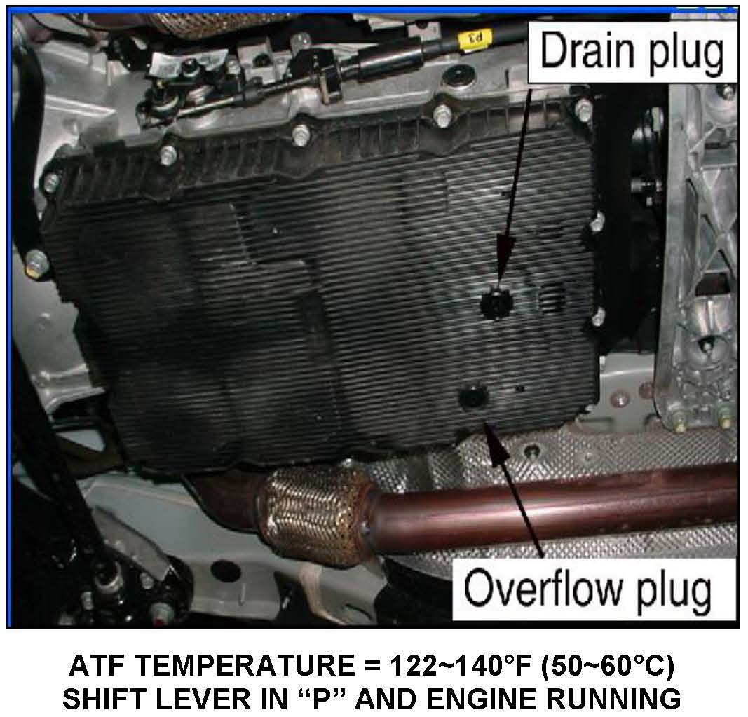 Add approximately 4~5 additional quarts of SPH-IV-RR ATF through the fill plug until the ATF flows out in a thin steady stream.
