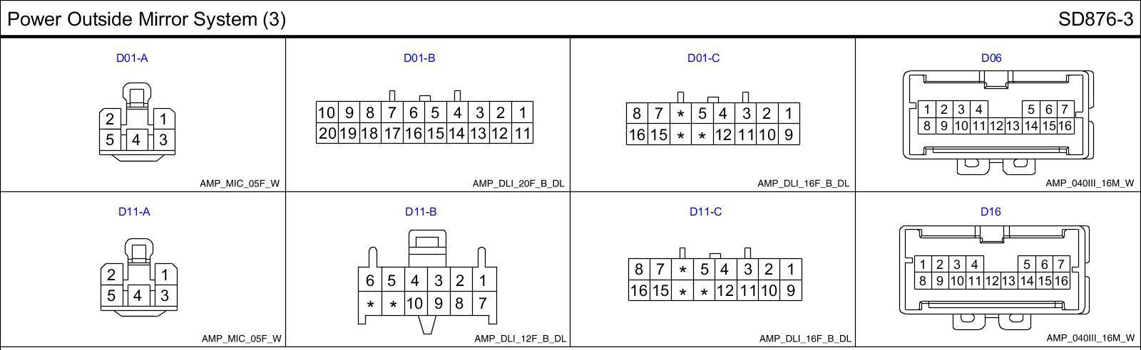 Power Outside Mirror System (3) Connector Pin Outs: