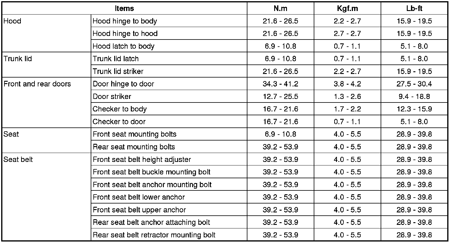 Tightening Torques