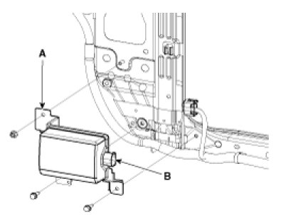1. Assemble the smart cruise control unit (A) to the bracket (B) correctly.