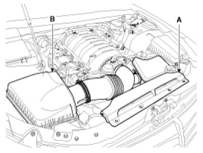 5. Install the air cleaner assembly (B) and air duct (A).