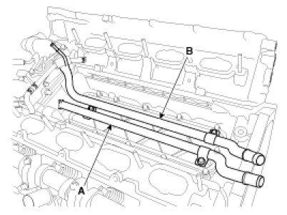 4. Connect the radiator upper hose (A) and lower hose (B).