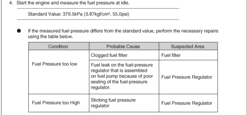 Fuel Pressure: Specifications