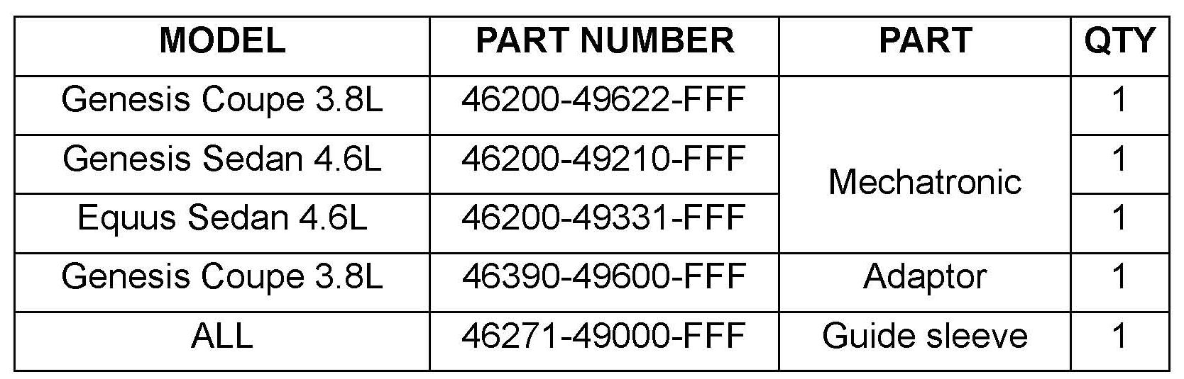 Genesis Coupe 3.8L, Genesis Sedan 4.6L and Equus Sedan 4.6L with