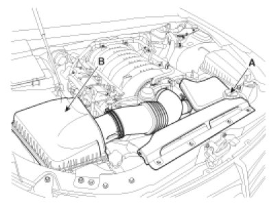 3. Remove the air duct (A) and the air cleaner assembly (B).