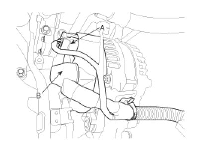 (1) Disconnect the alternator connector (A) and cable (B) from the 'B' terminal.