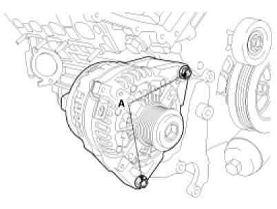 (2) Loosen the alternator mounting bolts (A) and then remove alternator from the vehicle.