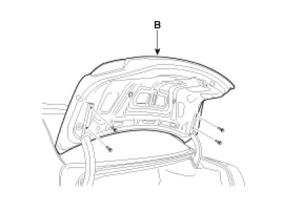 3. After loosening the mounting bolts, remove the trunk lid (B).
