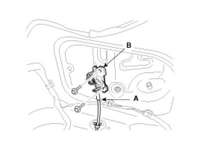 1. After loosening the trunk lid hinge (A) mounting bolt, adjust the trunk lid (B) by moving it up or down, or right or left.