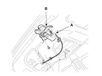 3. After loosening the mounting bolt, then remove the latch assembly (B).