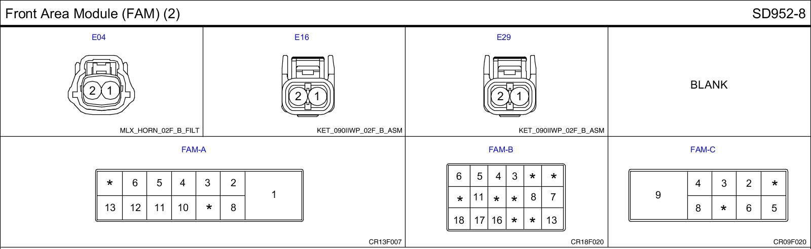 Front Area Module (FAM) (2) Connector Pin Outs: