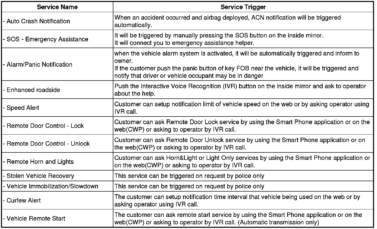 4. Control BCM by Call Center Service : Door Lock/Unlock, Horn/Light, Remote Start/Stop be operate by Service.