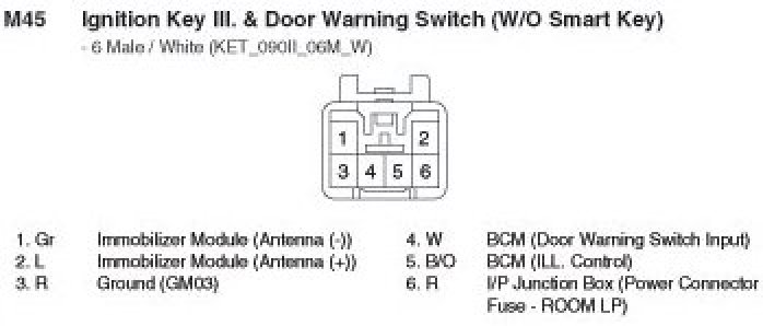 M45 Ignition Key ILL, & Door Warning Switch (W/O Smart Key):
