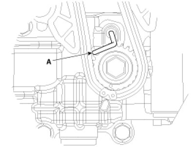 2. Install a stopper pin (A) after compressing the balance shaft chain tensioner.