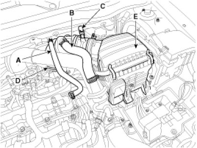 (1) Install the air cleaner assembly (E) and then connect the air intake hose (D).