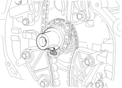 5. Install the timing chain. To install the timing chain with no slack between each shaft (cam, crank), follow the below procedure.
