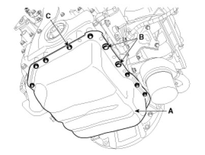 (3) Install the oil pan (A). Uniformly tighten the bolts in several passes.