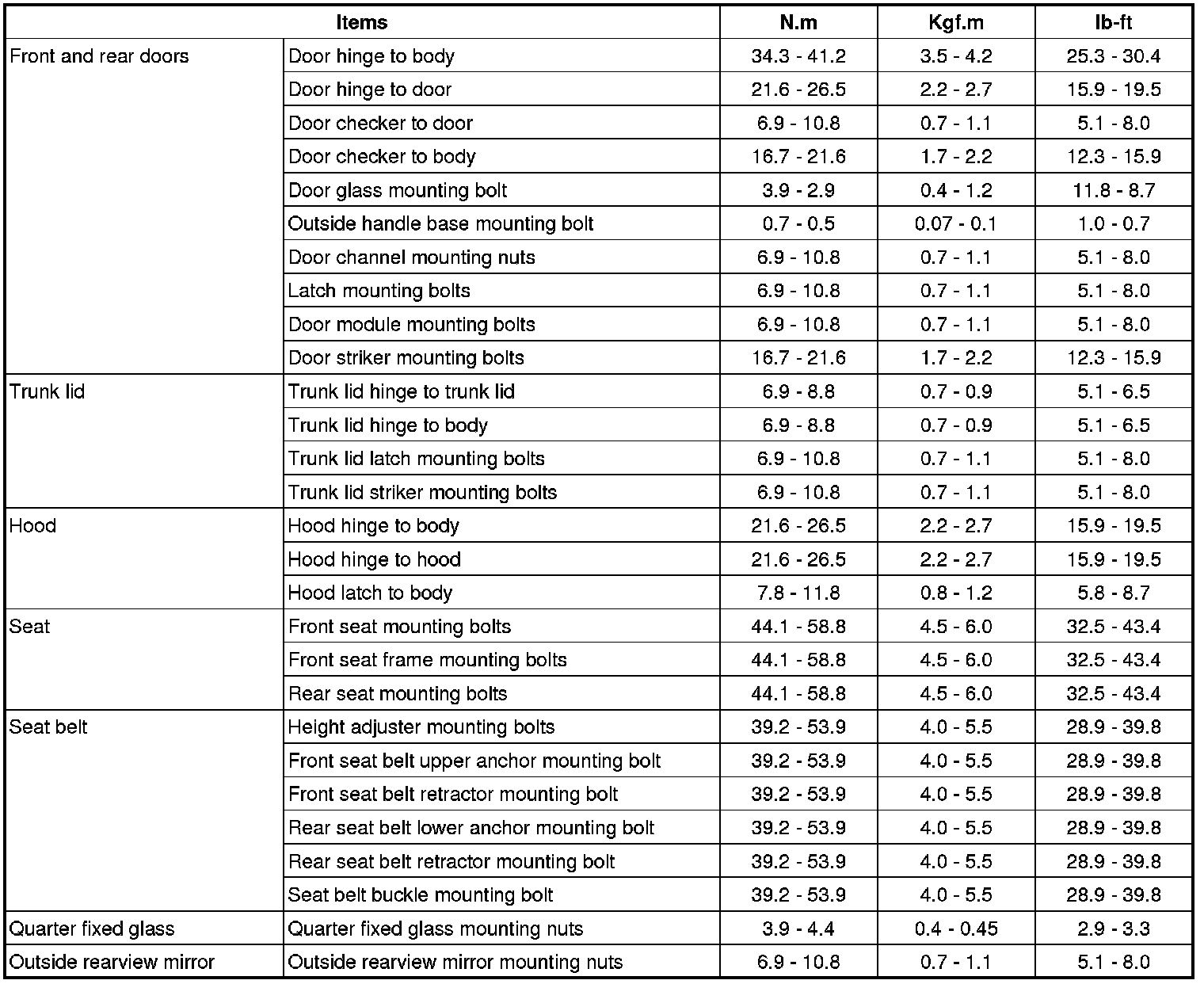 Tightening Torque