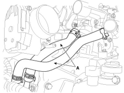 15. Disconnect the throttle body coolant hoses (A).