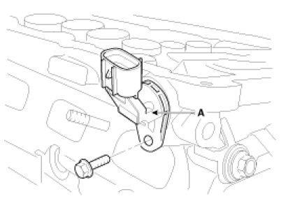When removing the CVVT assembly bolt, prevent the camshaft from rotating by using a wrench at position A.