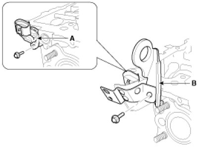 26. Remove the exhaust CMPS (Camshaft position sensor) (A) after removing the engine hanger (B).