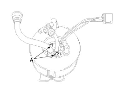 10. Separate the electric pump motor from the fuel filter after releasing the fixing hooks (A).