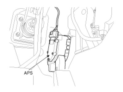 Accelerator Position Sensor (APS) is installed on the accelerator pedal module and detects the rotation angle of the accelerator pedal. The APS is one of the most important sensors in engine control system, so it consists of the two sensors which adapt individual sensor power and ground line. The second sensor monitors the first sensor and its output voltage is half of the first one. If the ratio of the sensor 1 and 2 is out of the range (approximately 1/2), the diagnostic system judges that it is abnormal.