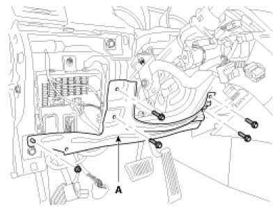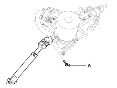 1. Loosen the bolt (A) and then disconnect the universal joint assembly from the steering column assembly.