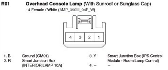 R01 Overhead Console Lamp (With Sunroof Or Sunglass Cap):