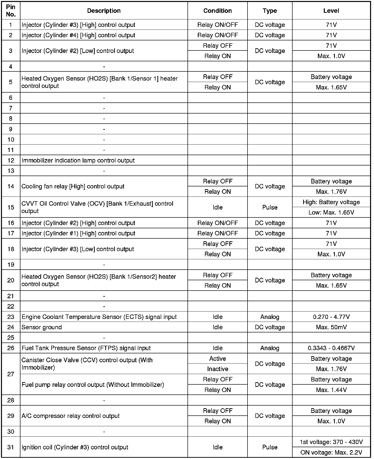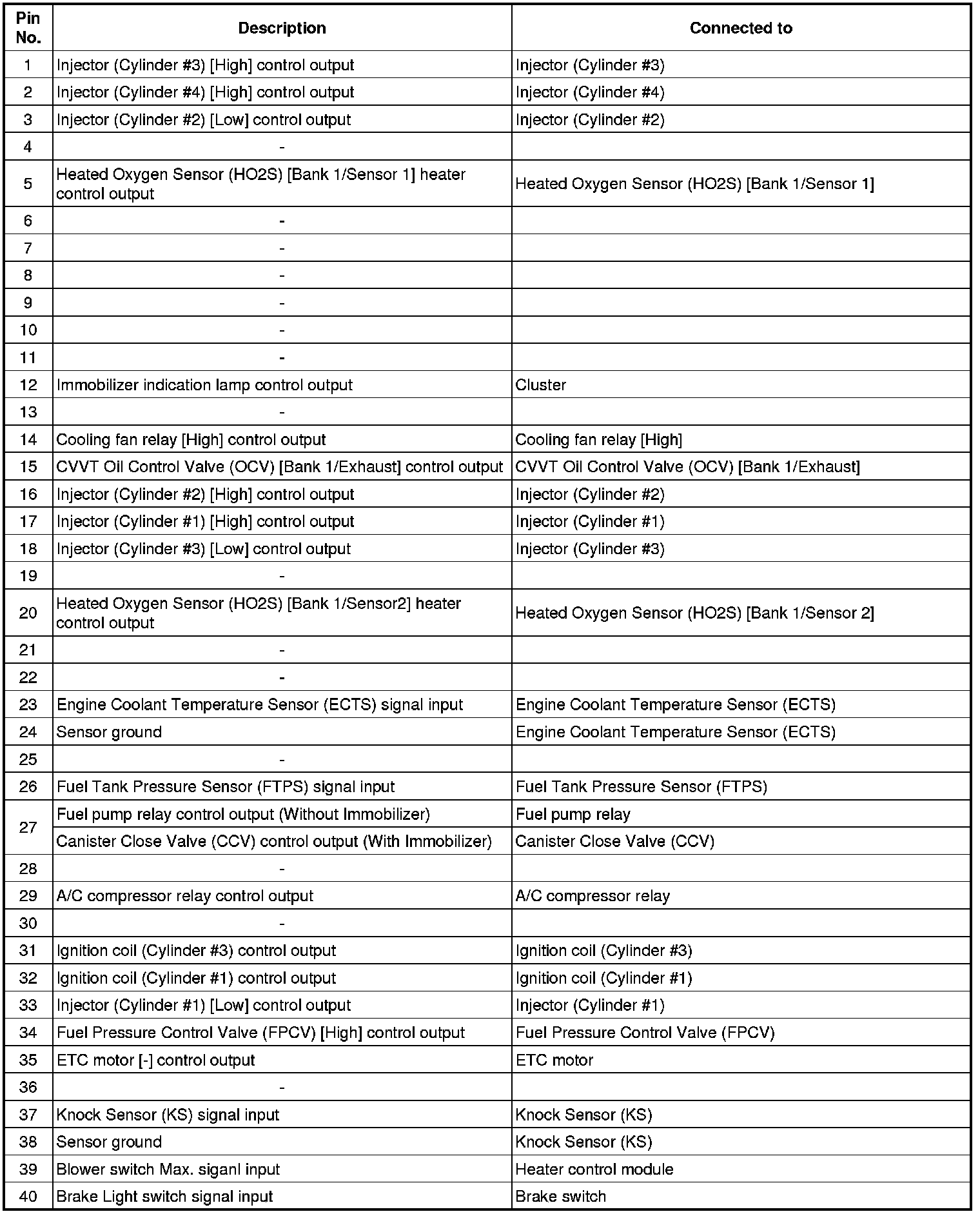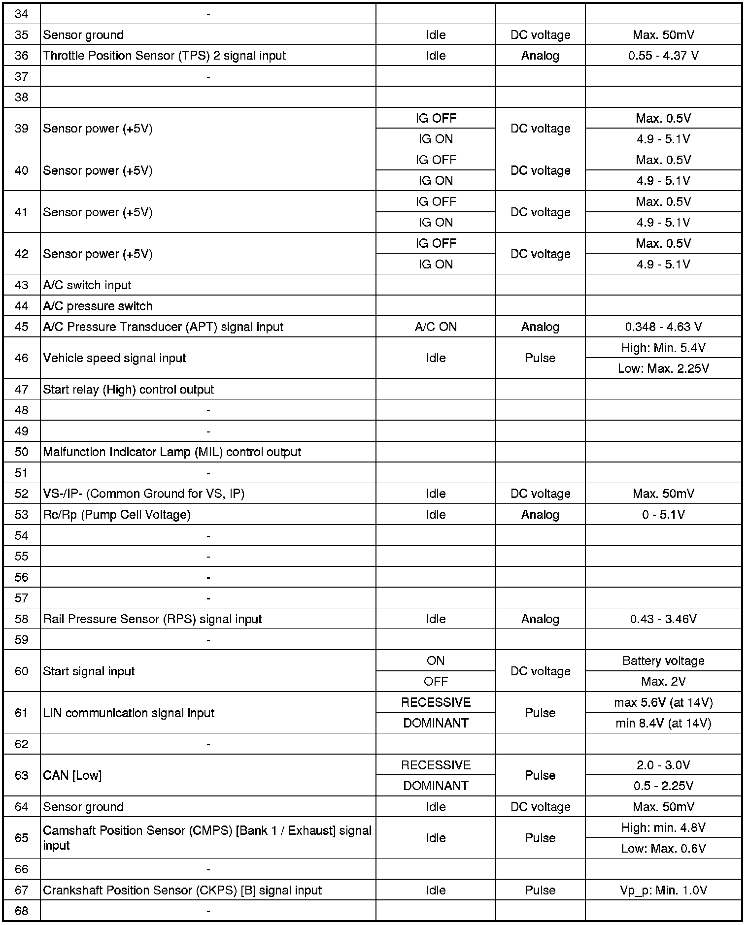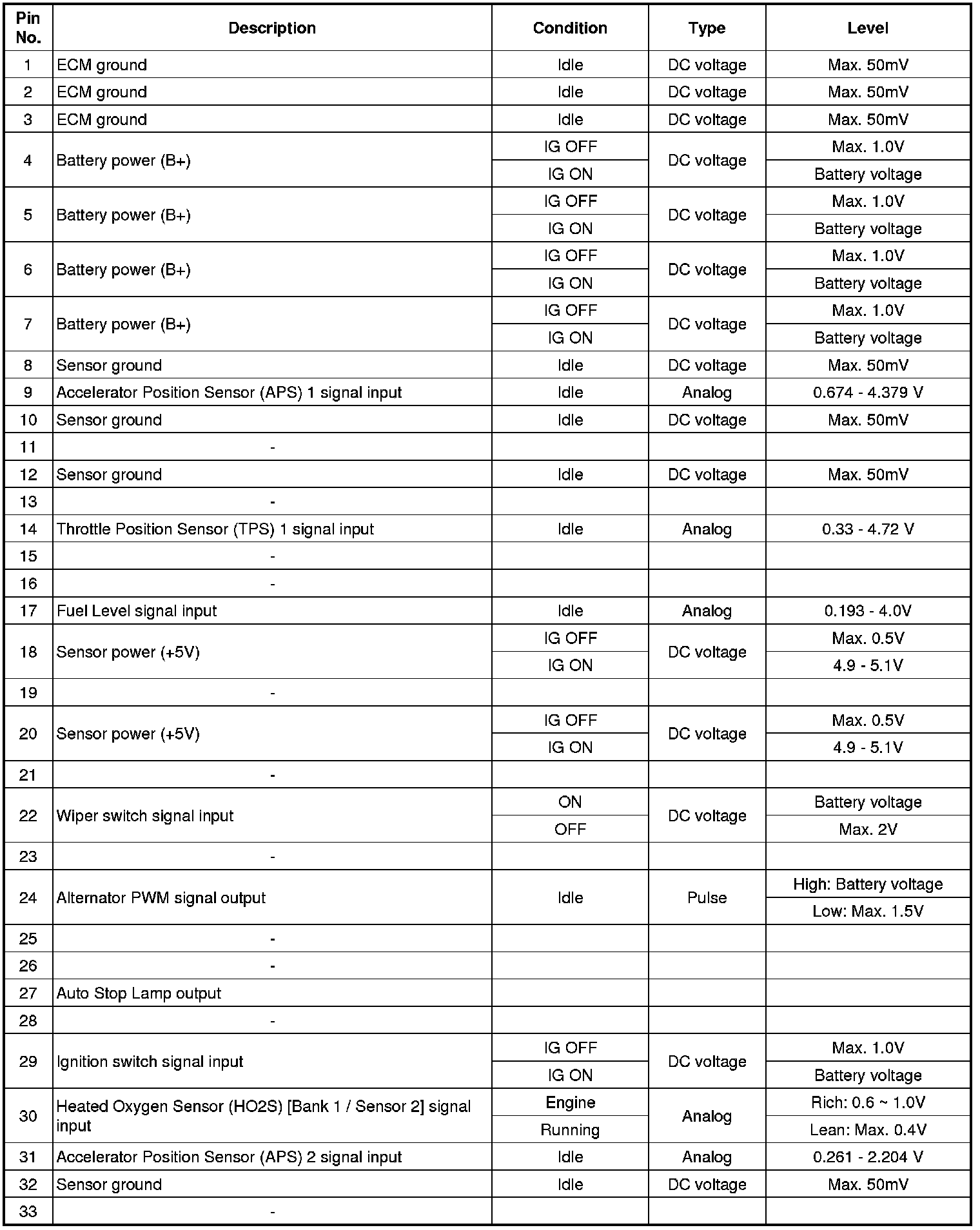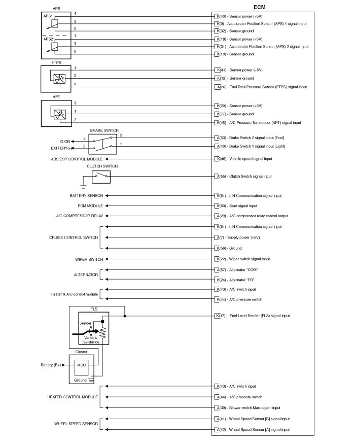 ECM Terminal Input/Output Signal