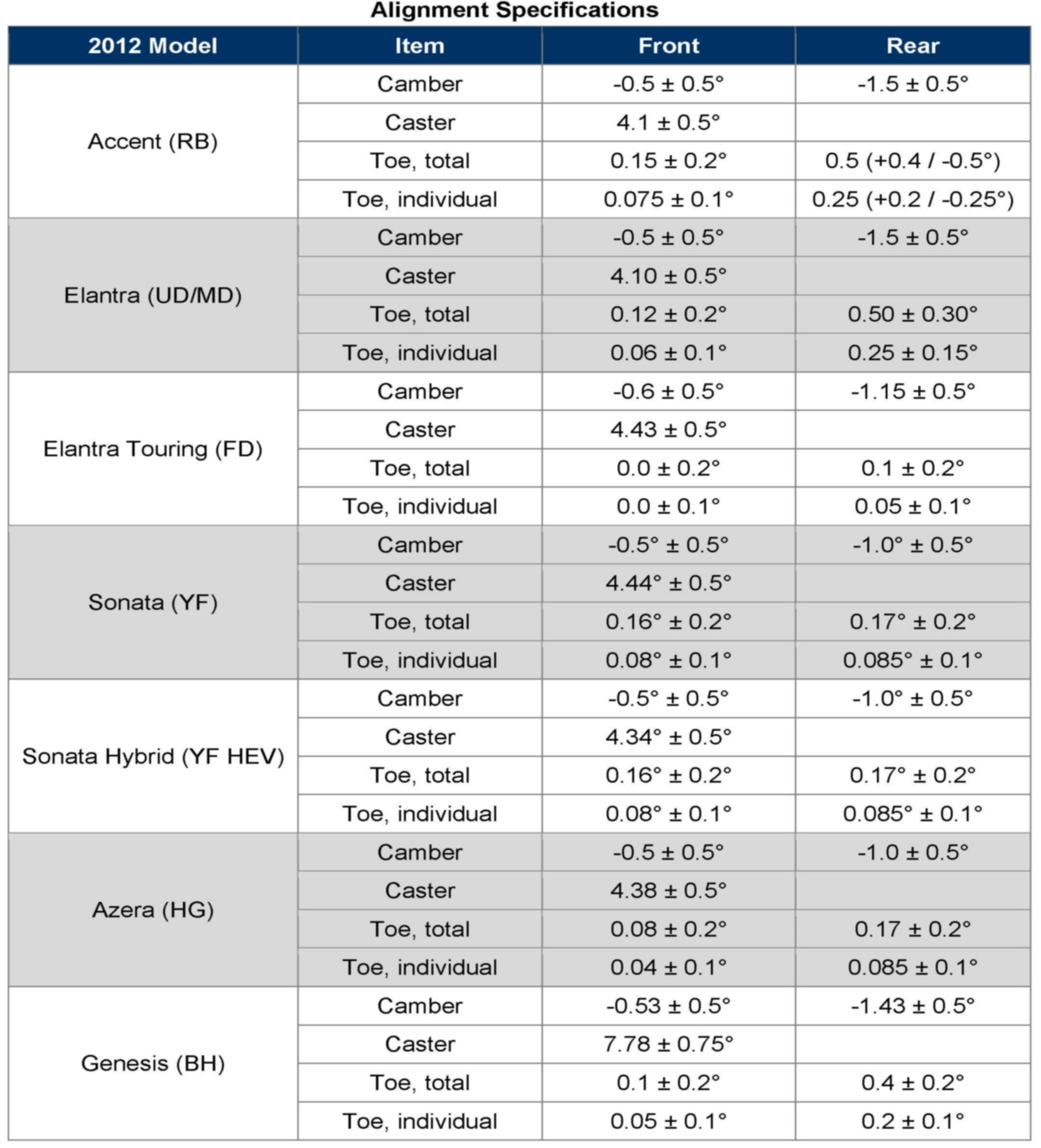 THIS BULLETIN SUPERSEDES TSB 12-SS-001 TO INCLUDE REVISED AZERA SPECIFICATIONS.