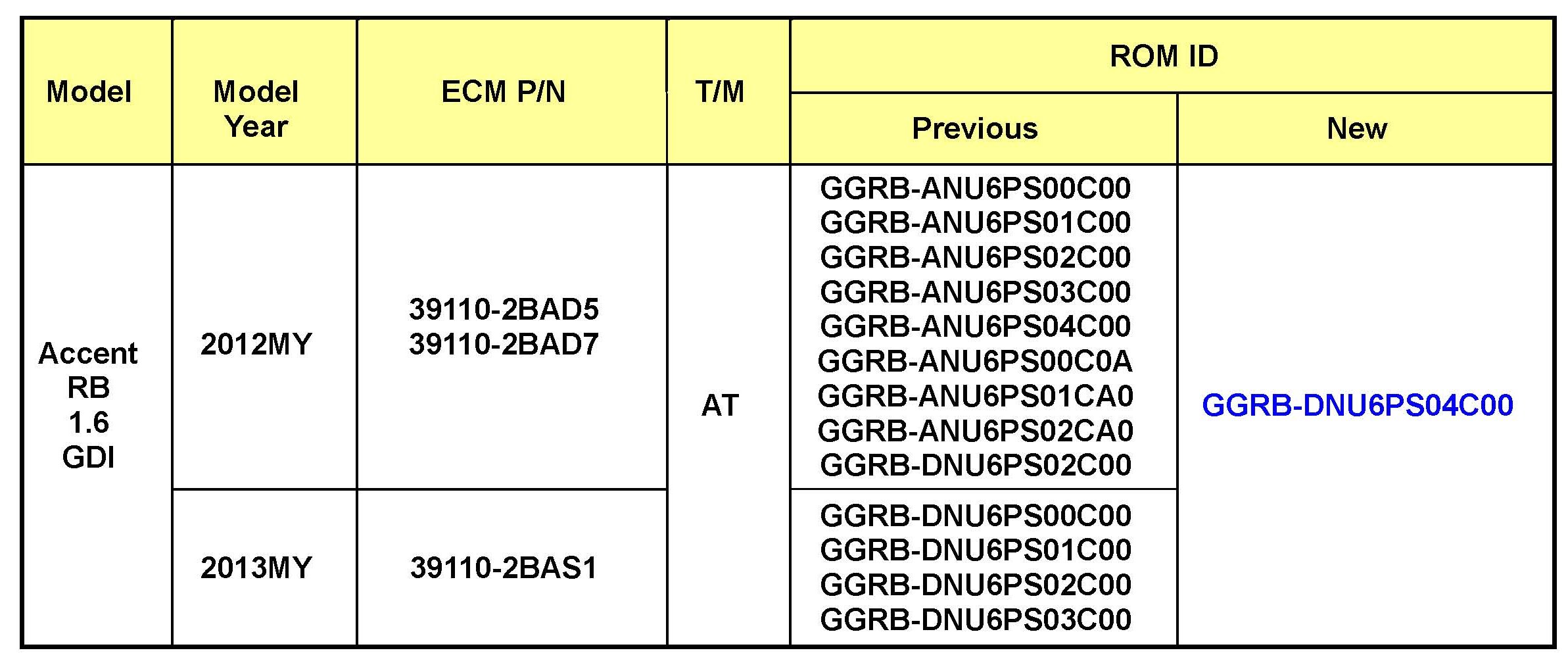^ 2012-2013 MY ACCENT (RB) with 1.6L GDI Engine and A/T.