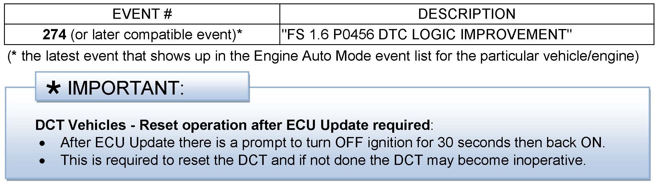 DCT Vehicles - Reset operation after ECU Update required: