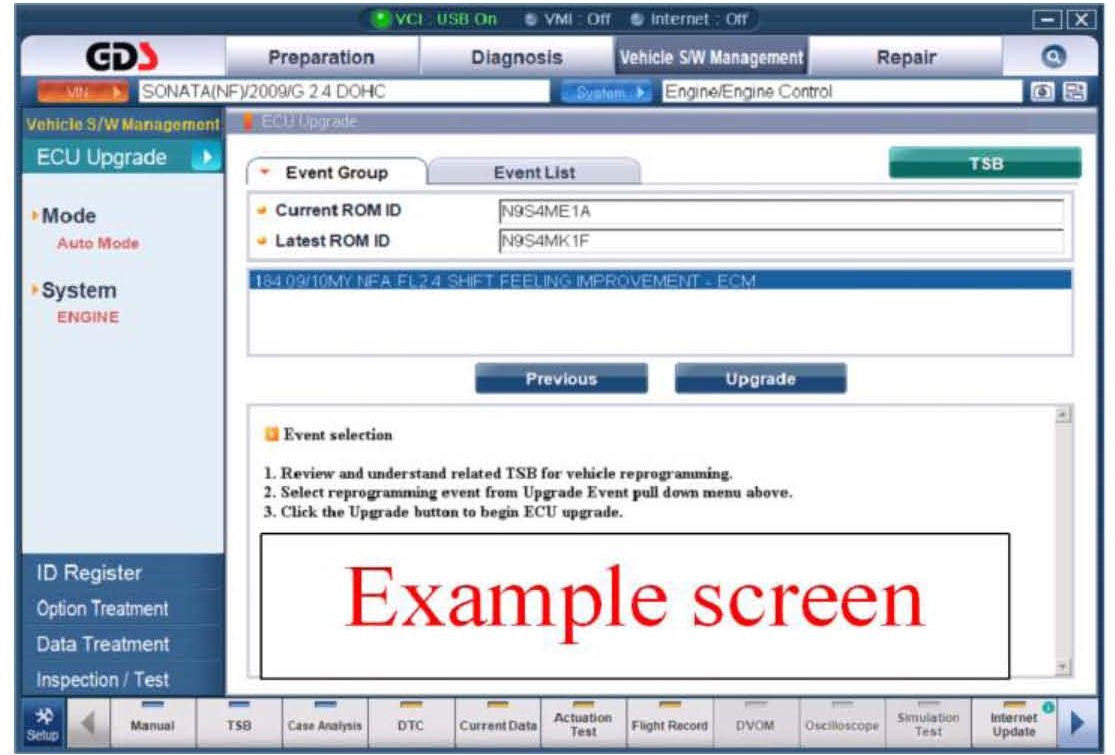 1. From the GDS home page, select ECU Upgrade. If necessary, select the VIN.
