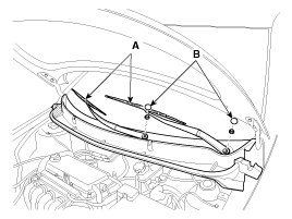 3. Detach the clips, then remove the cowl top cover (A).