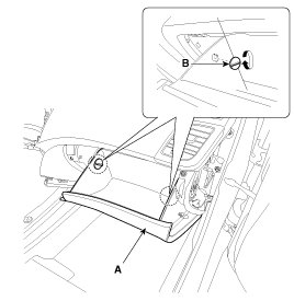 3. Disconnect the pin (A) and then remove the glove box (B).