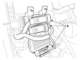 4. Disconnect the passenger`s airbag connectors (A).